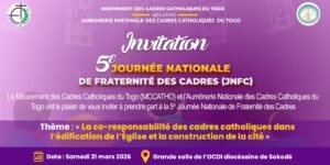 Le Mouvement des Cadres Catholiques du Togo (MCCATHO) et l’Aumônerie Nationale des Cadres Catholiques du Togo ont le plaisir de vous convier à la 5ᵉ édition de la Journée Nationale de Fraternité des Cadres (JNFC). Cette année, nous explorons ensemble le thème :